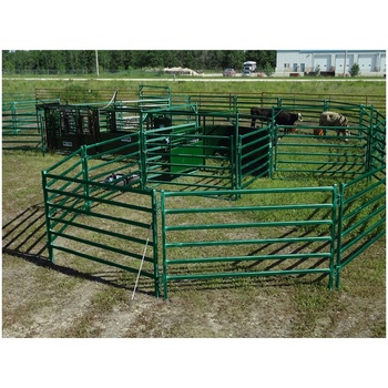 W-shaped 5x12 Ft 6x12ft Galvanized 5/6 Rails Metal Eco-Friendly Cattle Corral Livestock Horse Panels Farm Fencing